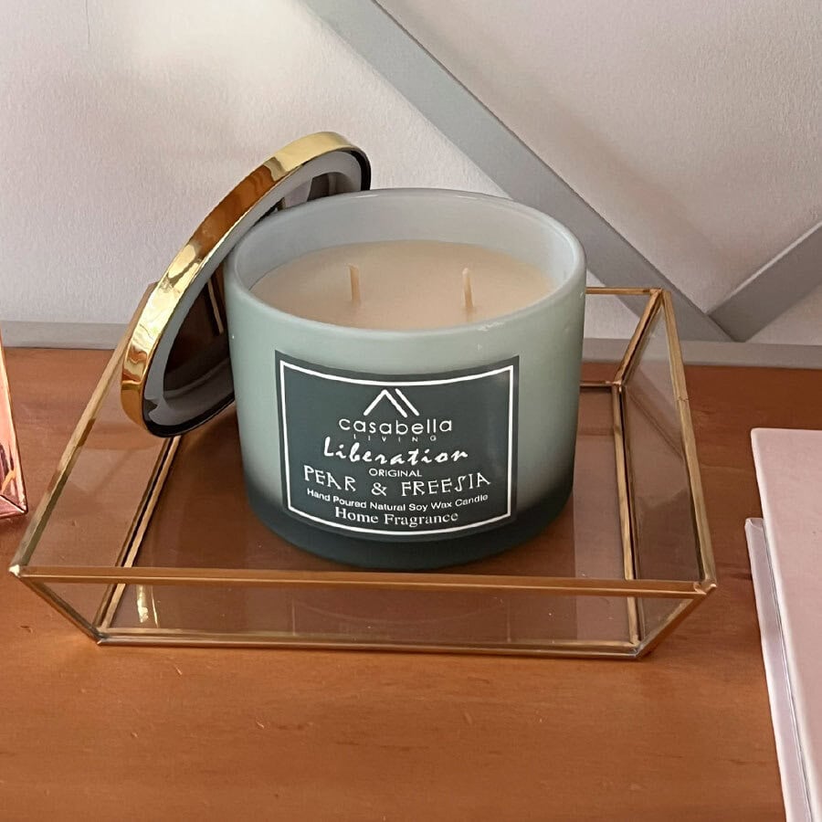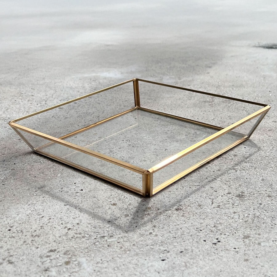 Una pieza delicada para realzar cualquier espacio. Ideal para servir, organizar perfumes, velas o pequeños detalles decorativos, combinando funcionalidad y estilo con su elegante borde dorado.