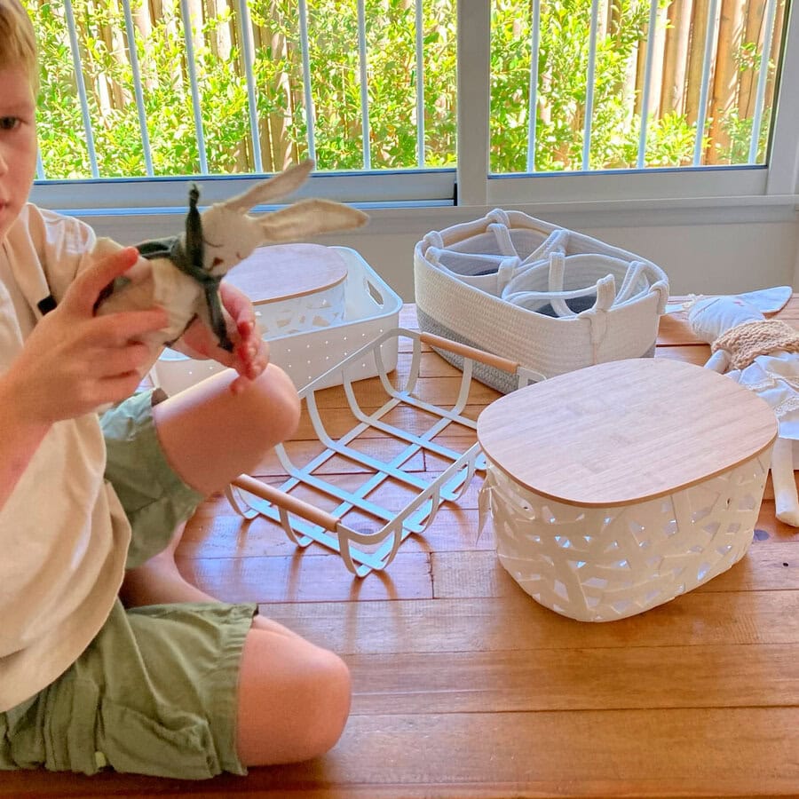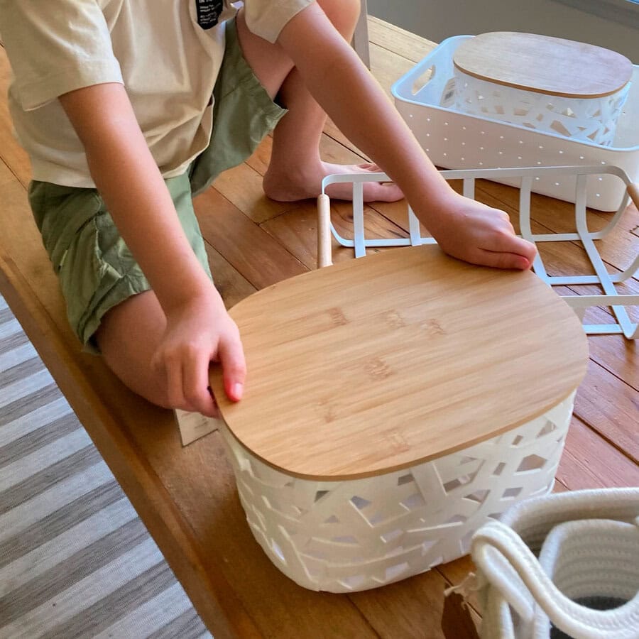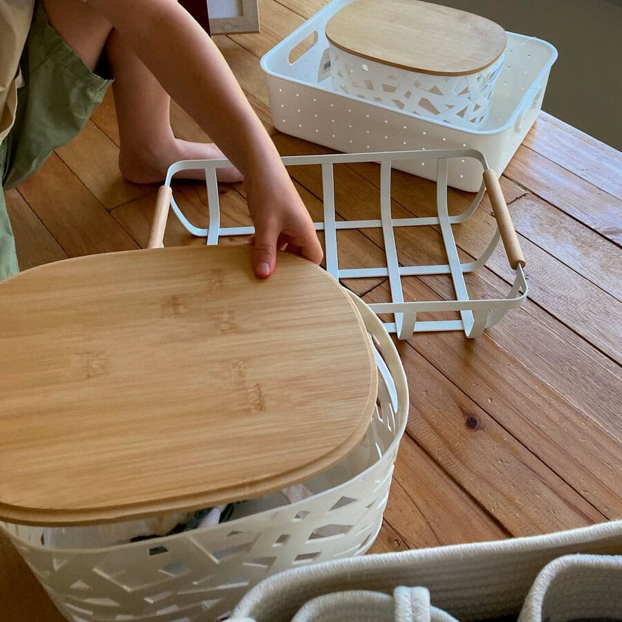 Cesta de Almacenamiento con tapa de Bambú 29 x 21 x 16,2 cm.