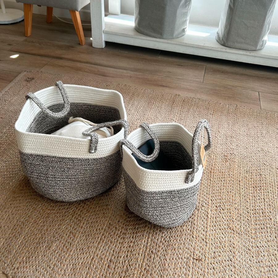 Esta cesta de almacenamiento ofrece una opción práctica y versátil para organizar una variedad de elementos en el hogar. Fabricada con cuerda de algodón 100%, garantiza un producto suave al tacto y completamente natural.