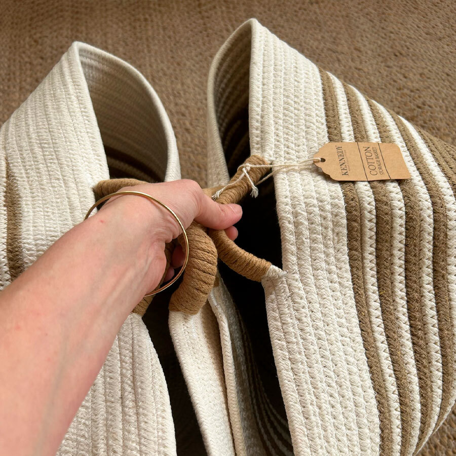 Esta cesta de almacenamiento ofrece una opción práctica y versátil para organizar una variedad de elementos en el hogar. Fabricada con cuerda de algodón 100%, garantiza un producto suave al tacto y completamente natural.