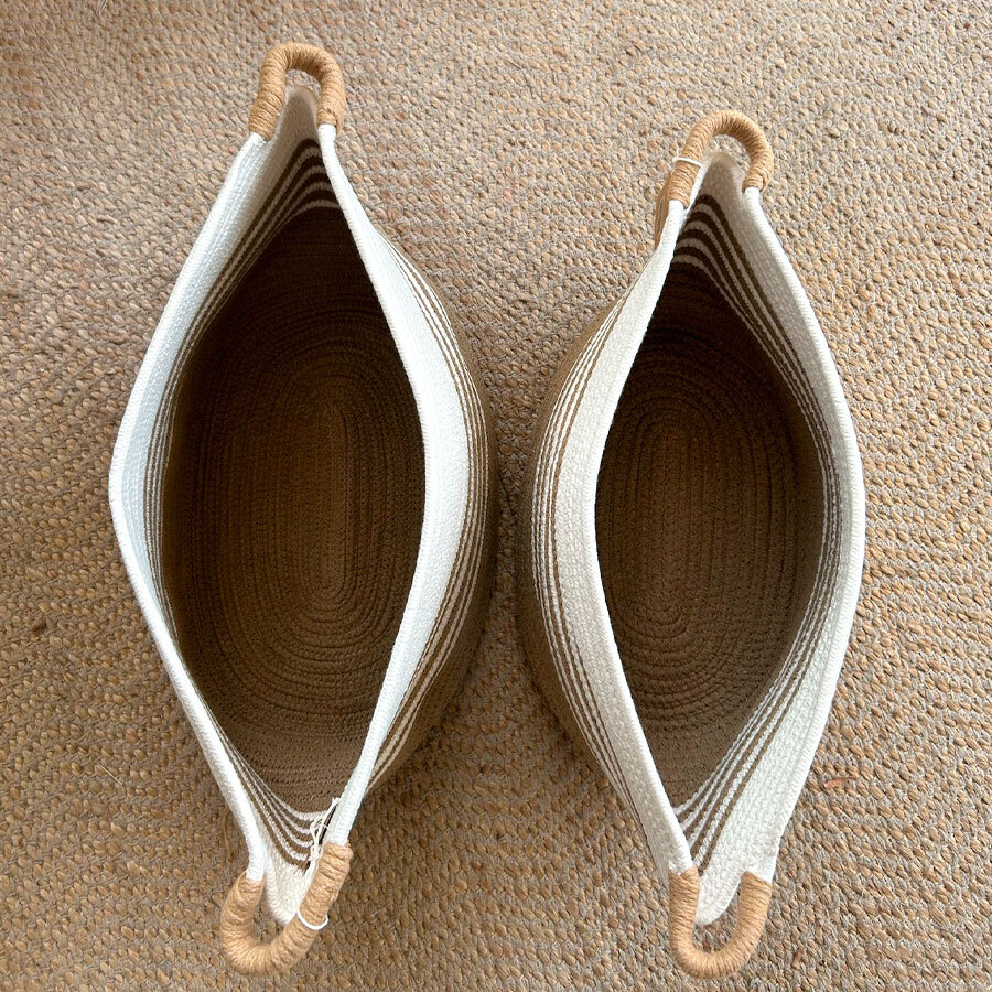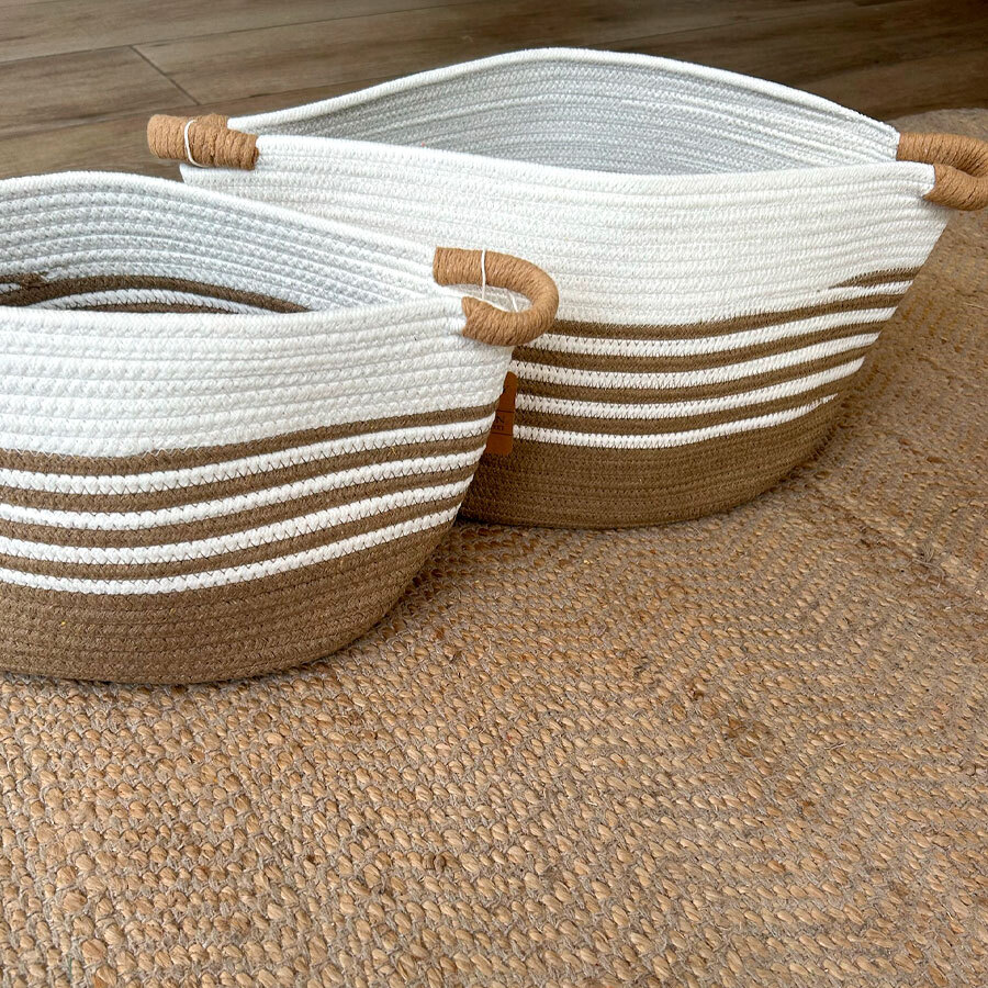 Con un diseño en colores sutiles, esta cesta no solo es práctica sino también estéticamente agradable, agregando un toque elegante a la decoración del hogar.