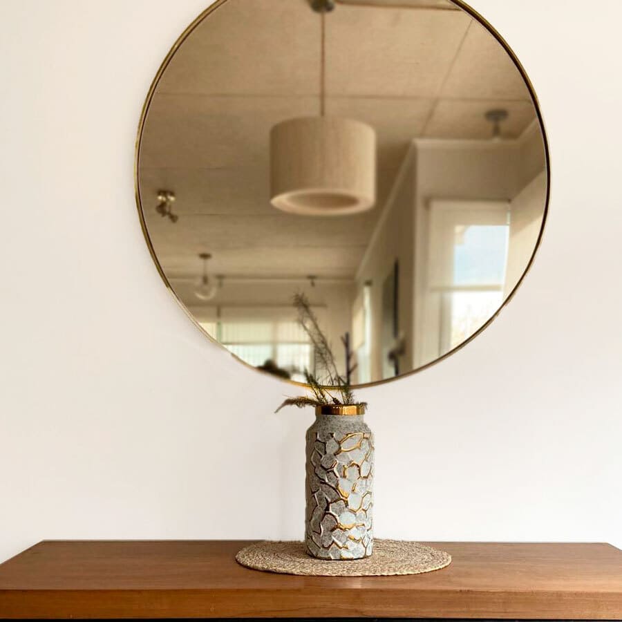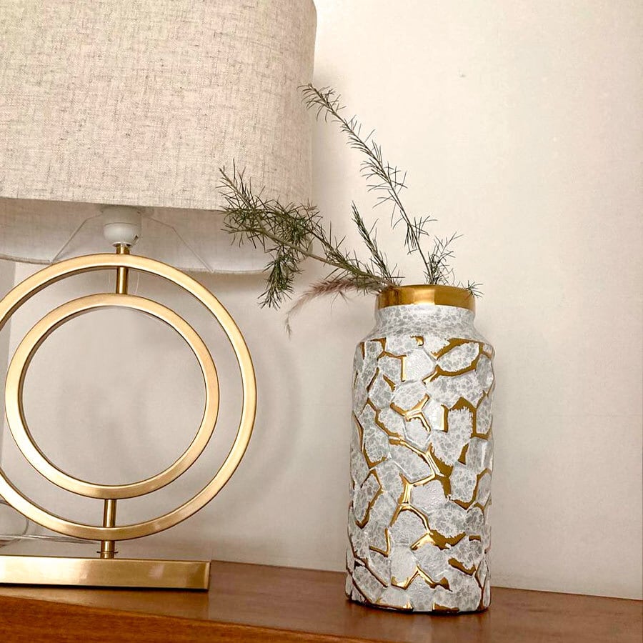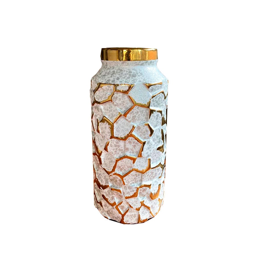 Florero Arcilla Blanco con Dorado 13 x 13 x 28,5 cm.
