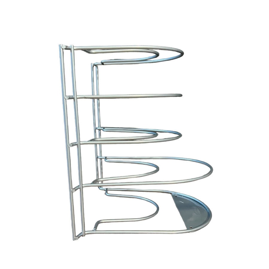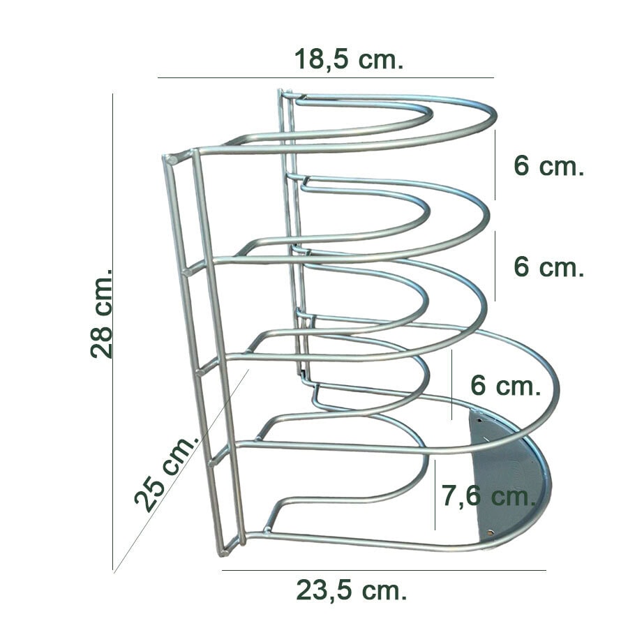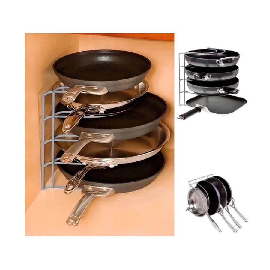 Este producto te ayuda a ordenar tus sartenes de forma práctica y segura. Puedes colocarlo de manera vertical o horizontal, según el espacio disponible y tu preferencia. Tiene capacidad para 5 sartenes de diferentes tamaños. Para instalarlo, solo tienes que limpiar la superficie donde quieres fijarlo, quitar la protección del adhesivo y fijar el organizador contra la pared o el mueble.