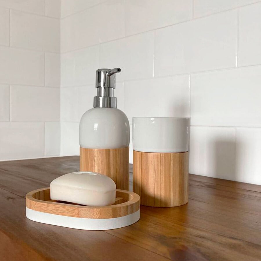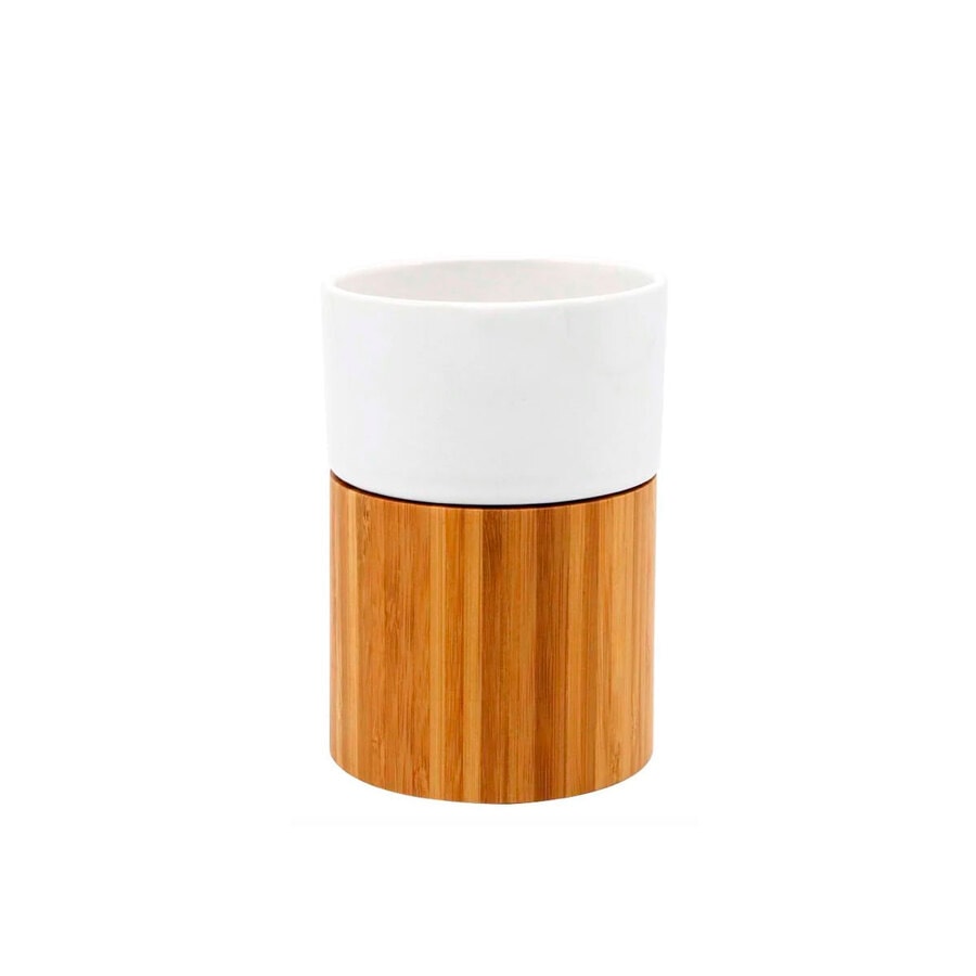 Vaso Porta Cepillos Dientes Cerámica Redondo Natural